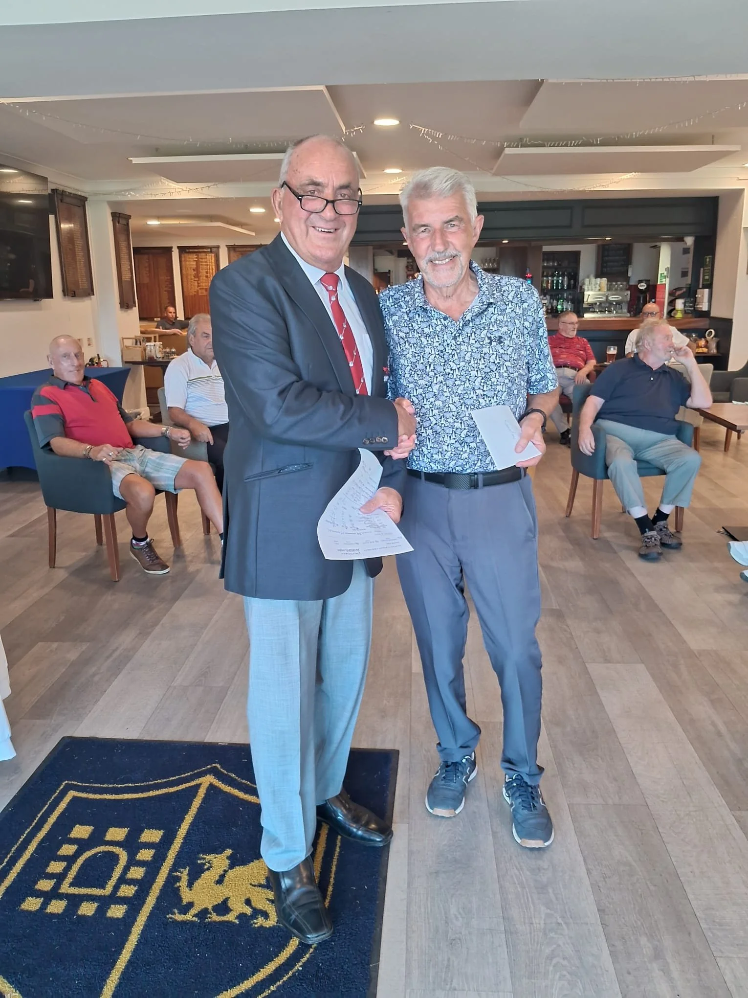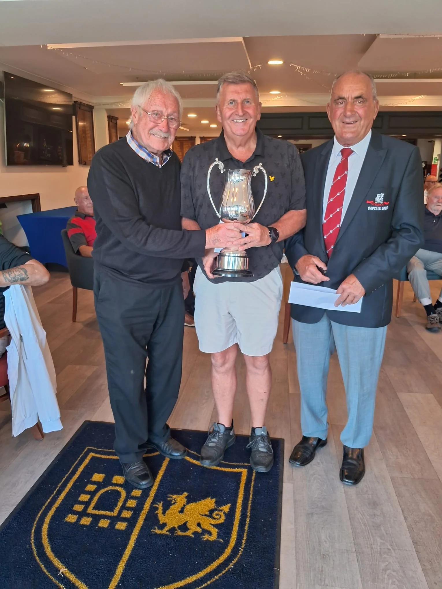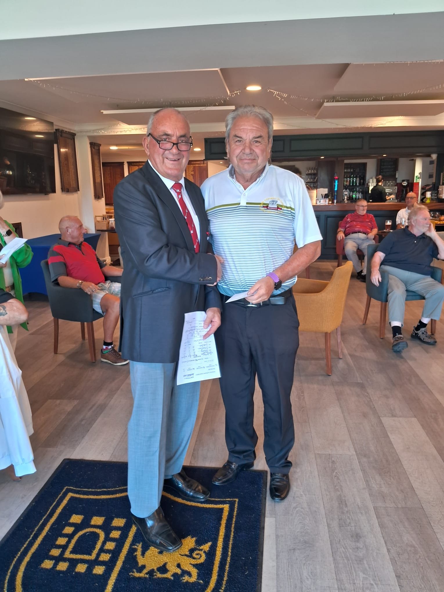 Keith Hubbard won the raffle. Nigel Bird was N.P. Michael Williams was best guest. Peter Watkins won members draw. Jay Aston had a picture with some whisky. Adrian Gregory tried selling a shirt back to us.